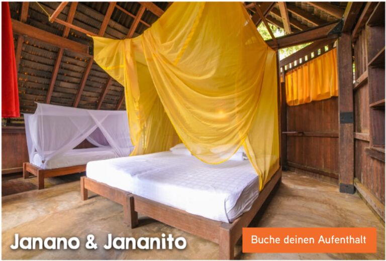 Unsere Bungalows und Zimmer wurden entworfen, um dir Komfort zu bieten, ohne die Harmonie der Umgebung zu stören. Hohe Decken, natürliche Belüftung, Terrasse mit Hängematte und Meerblick. Eigenes Bad, frische Blumen, Moskitonetz, Ruhe.